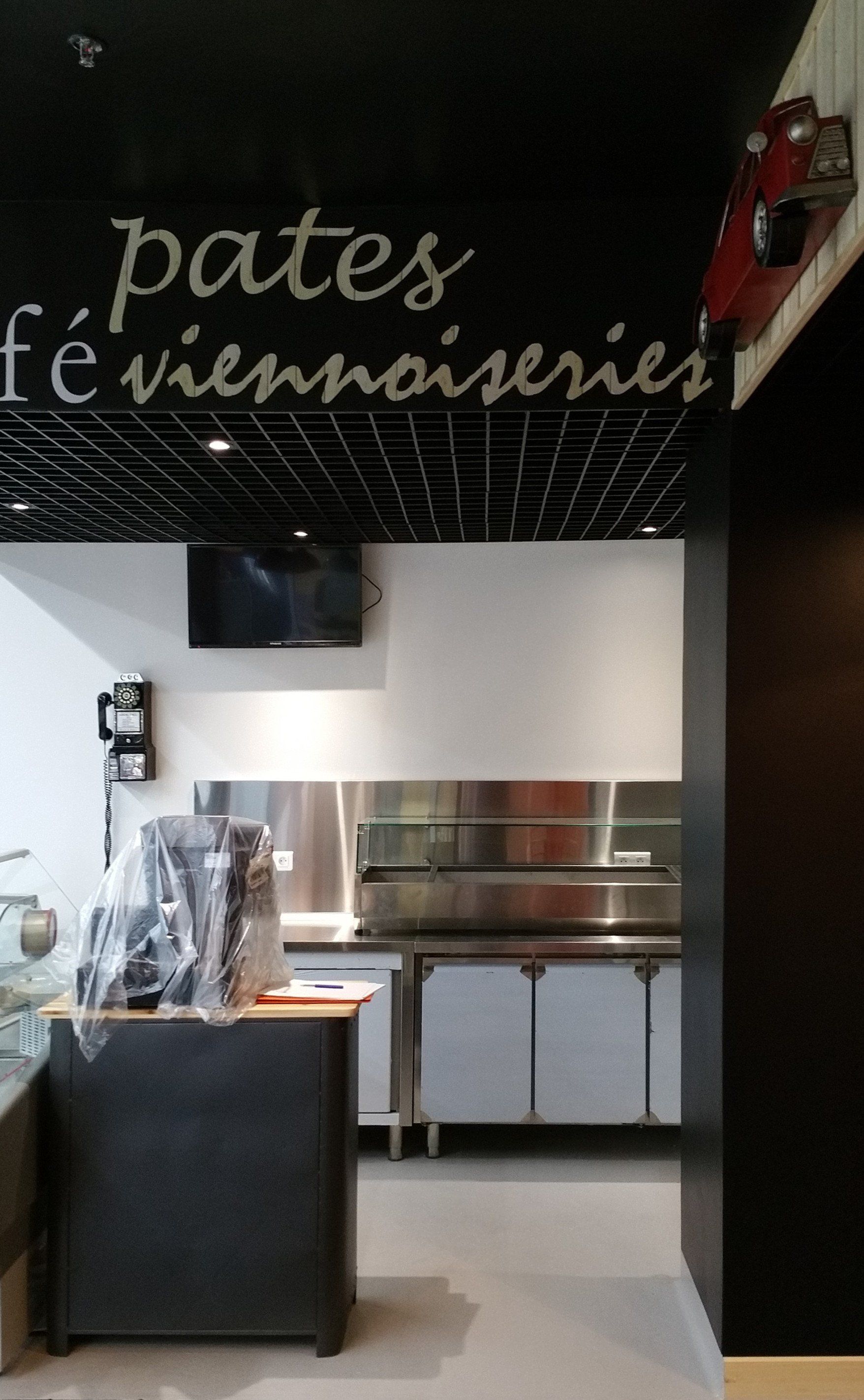 Aménagement d'une cellule commerciale avec la création des réseaux souterrains d'assainissement, d'une cuisine, d'un espace de vente et d'un espace de restauration.